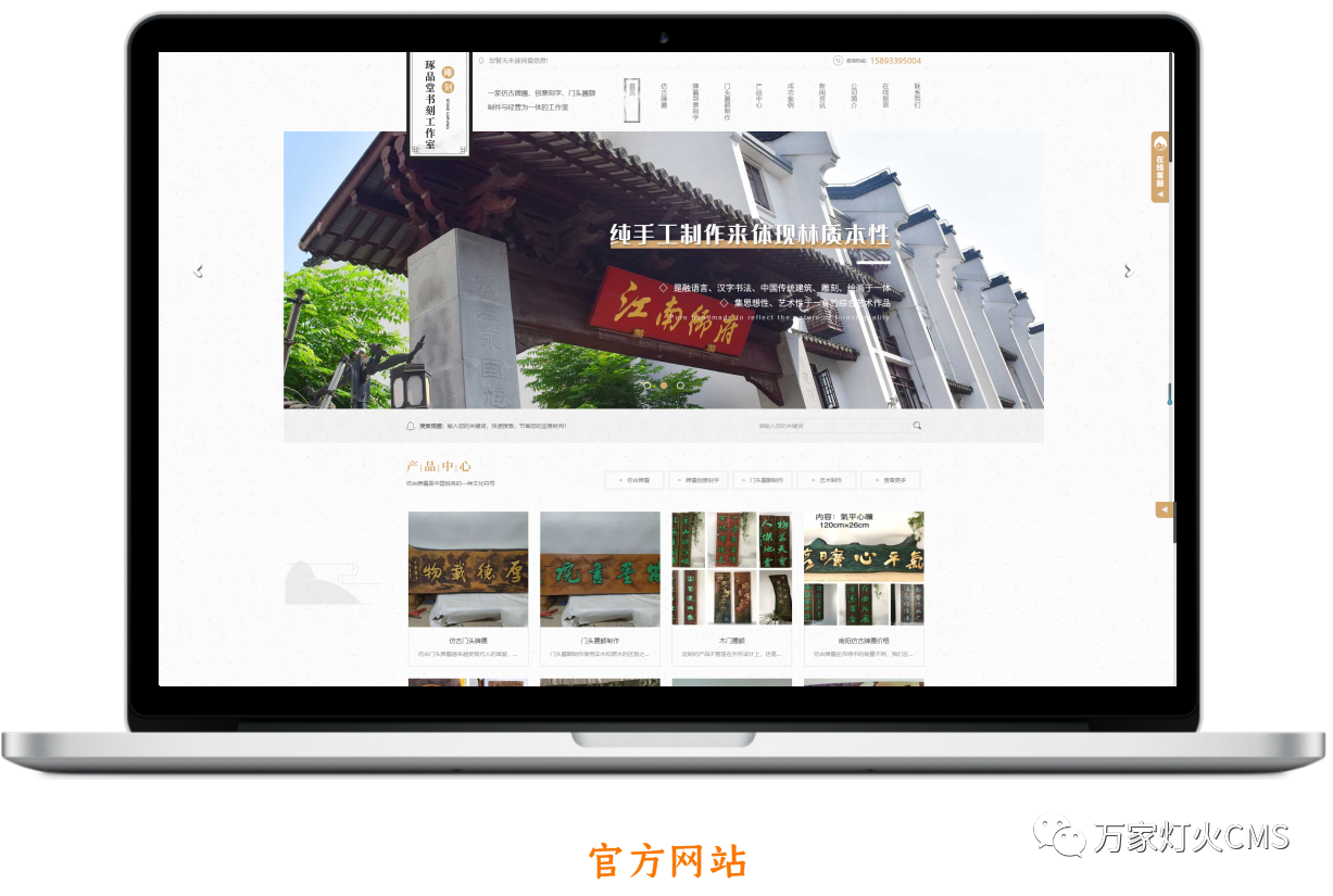 根據(jù)琢品堂的古風文化特色,萬家燈火制定了適合的網(wǎng)站,并將公司核心產(chǎn)品:仿古牌匾、牌匾創(chuàng)意刻字、門頭匾額制作重點突出。萬家燈火CMS系統(tǒng)制作完成后,宋總對效果非常滿意,便馬不停蹄安排上線。